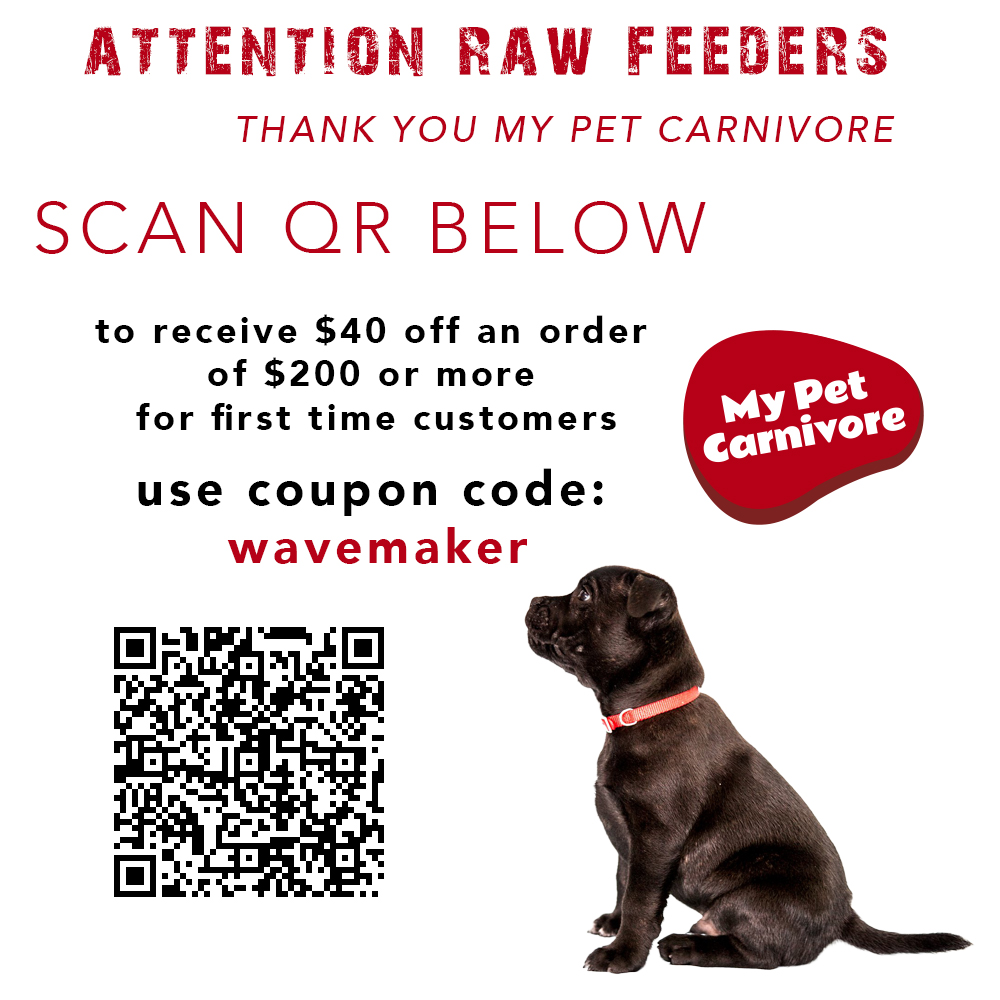 My Pet Carnivore ($40 off an order of $200 or more for first time customers – use coupon code: wavemaker)